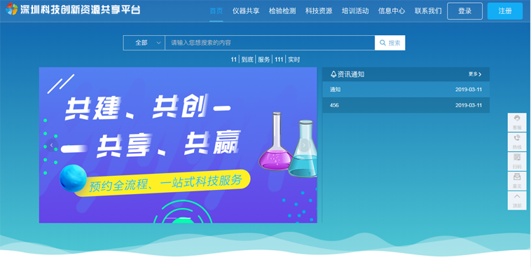 深圳市大型科学仪器设施共享工作目前依托“深圳市科技创新资源共享平台”开展,深圳市大型科学仪器设施资源共享平台旨在打造“国内领先的科技服务电子商务平台”和“科技创新服务大数据平台”,为用户提供一站式科技服务,大幅降低企业研发成本,提高自主创新效率,带动科技服务行业标准化、信息化、网络化服务水平和效率的整体提高。
